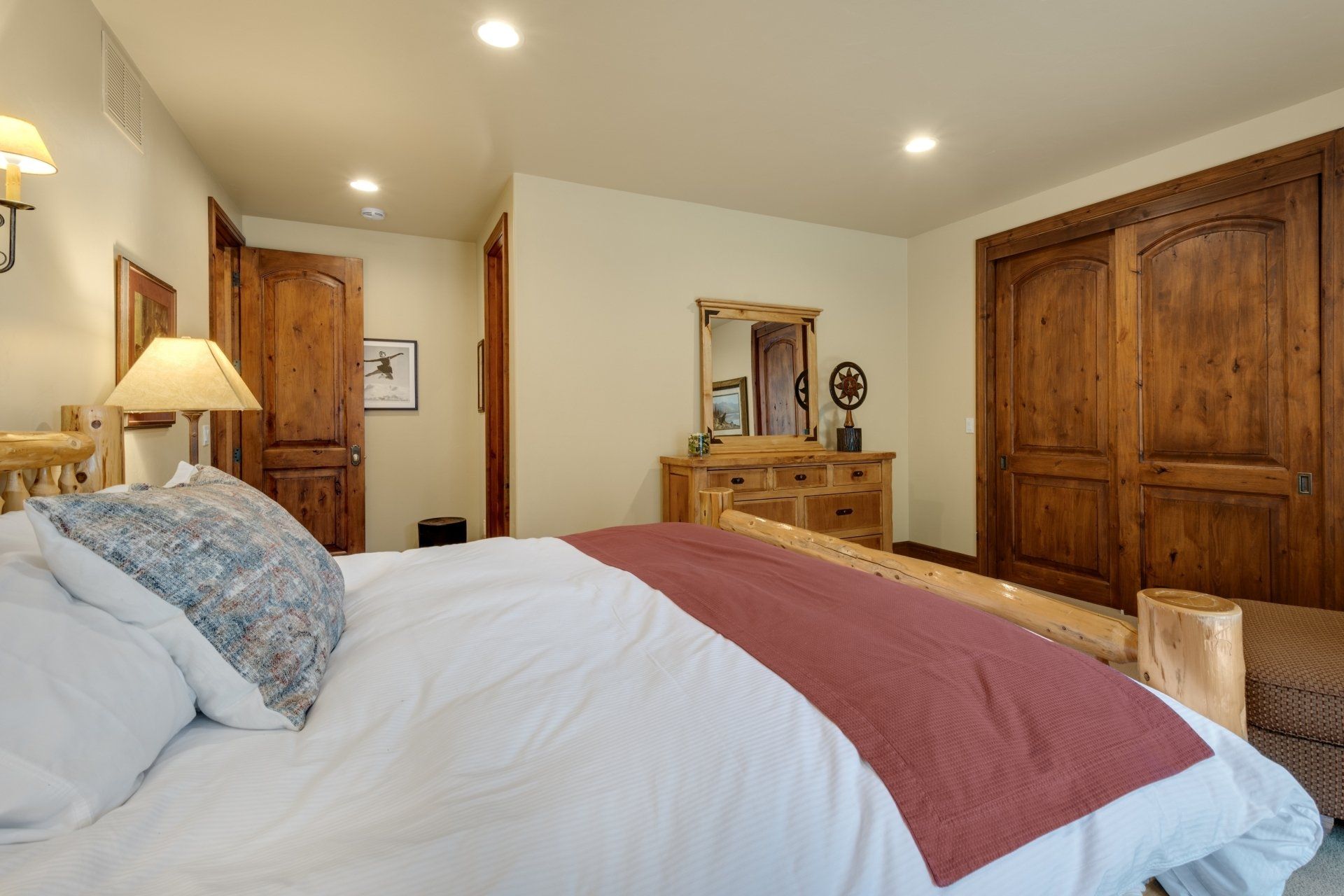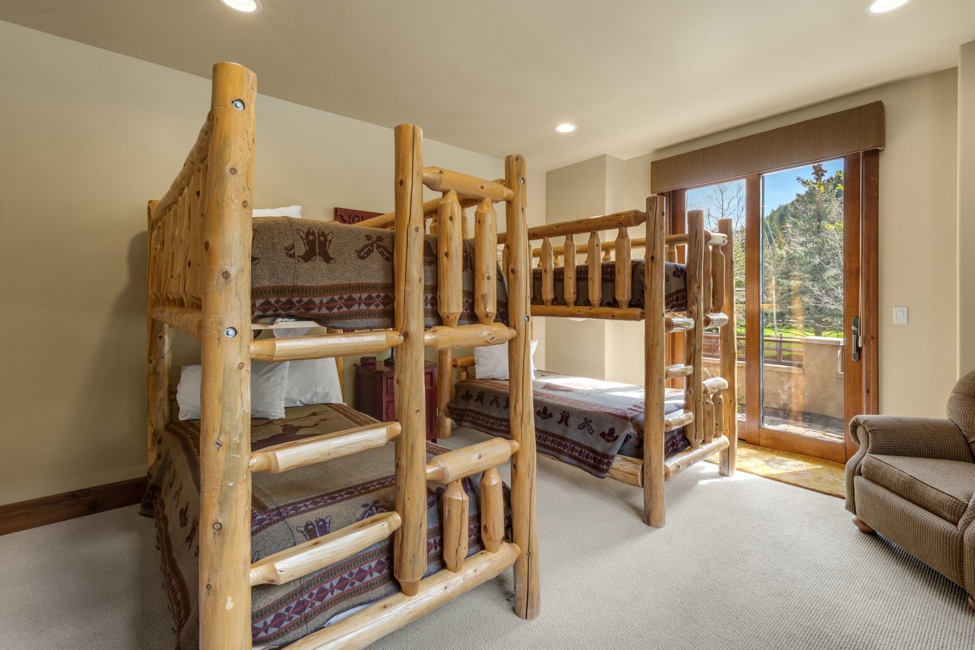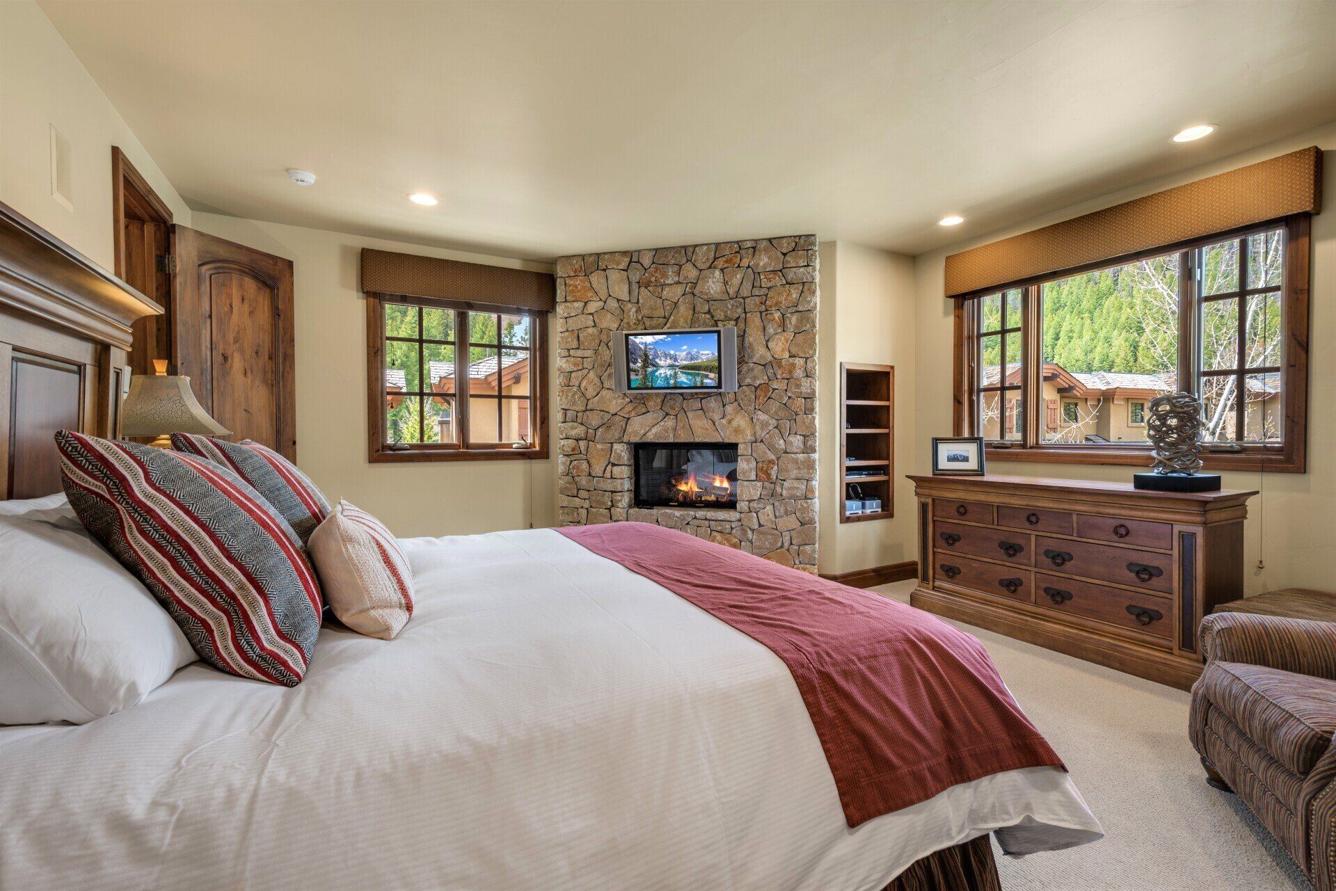 Perfect for a large family (up to 10 people), The Haven boasts three master suites with king-sized beds, one bunk room that sleeps four in twin beds, another room with two twin beds. There are four bathrooms. It comes fully stocked with everything you might need -- from spices to shampoo – and your rental includes daily bed-making, trash removal and general tidying. You will also enjoy a state-of-the-art entertainment system, high-speed internet and wifi, laundry room, heated, two-car garage, heated deck, barbecue, a wood-burning fireplace in the living room and a gas fireplace in the main master bedroom.