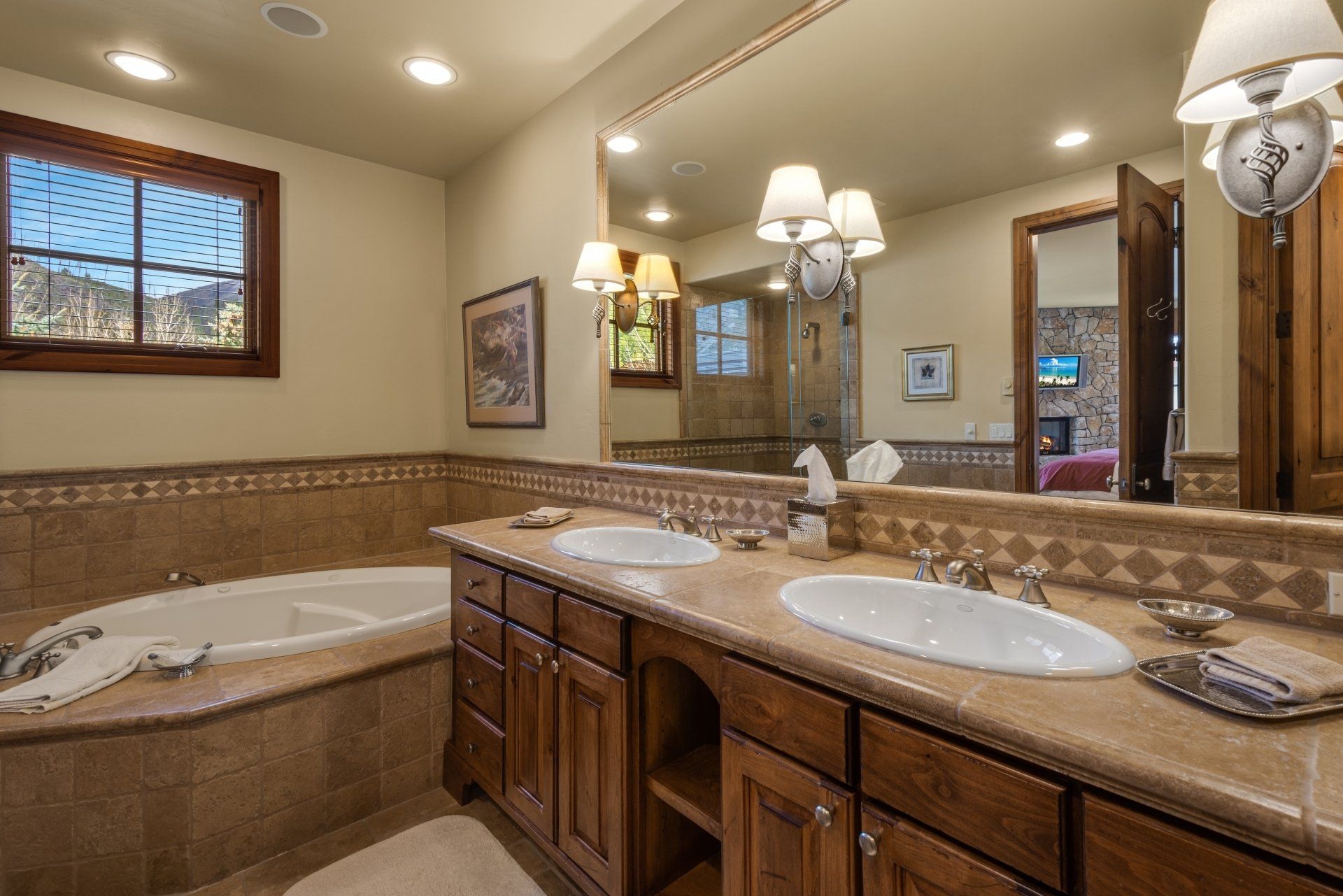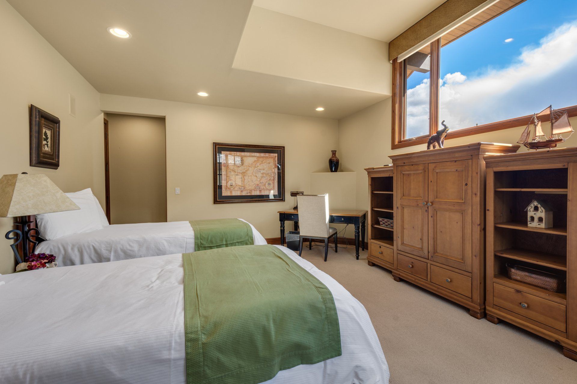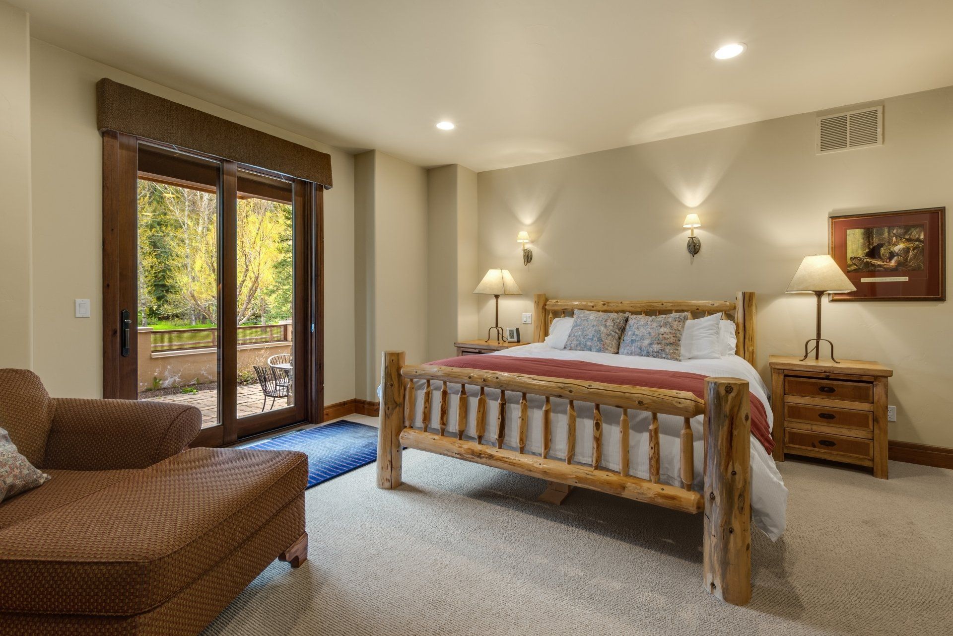 Perfect for a large family (up to 10 people), The Haven boasts three master suites with king-sized beds, one bunk room that sleeps four in twin beds, another room with two twin beds. There are four bathrooms. It comes fully stocked with everything you might need -- from spices to shampoo – and your rental includes daily bed-making, trash removal and general tidying. You will also enjoy a state-of-the-art entertainment system, high-speed internet and wifi, laundry room, heated, two-car garage, heated deck, barbecue, a wood-burning fireplace in the living room and a gas fireplace in the main master bedroom.